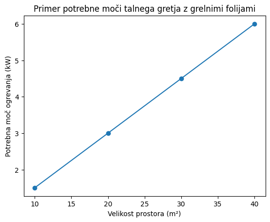Sistem je tudi energetsko učinkovit. Moč grelnih folij običajno znaša približno 110–220 W na m², dejanska poraba pa je zaradi termostata precej manjša. V praksi talno gretje ne deluje neprekinjeno – pogosto je aktivno le približno 20–30 minut na uro, saj se izklopi, ko prostor doseže nastavljeno temperaturo. Na primer, prostor velik 20 m² potrebuje približno 2–3 kW moči, vendar zaradi regulacije sistem porabi občutno manj energije.